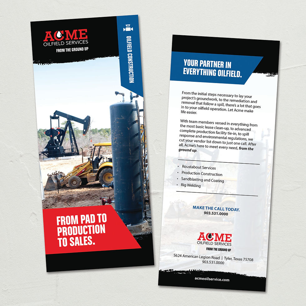 Acme Oilfield Services had recently expanded and worked to develop new branding to make a name in the market. The rebranded look gave them some polish while still evoking the rough and tough side of oilfield construction.